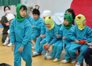 午前は、体育館で小学部3年・4年・5年・6年生が劇を、高等部1年生が今までの取り組みの成果の発表を行いました。また、音楽室では小学部1年・2年生が劇の発表を行いました。途中には中学部と高等部のバザー宣伝もありました。