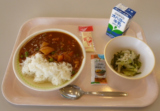 ハヤシライス、牛乳、海草サラダ、チーズ 787キロカロリー