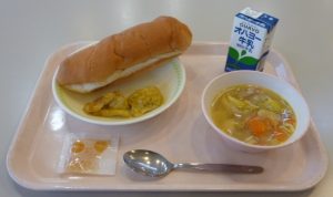 “こめこパン マーマレード 牛乳 タンドリーチキン マカロニスープ 822キロカロリー