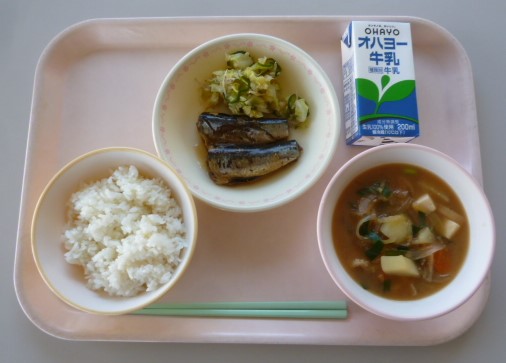ごはん 牛乳 いわしのしょうが煮 甘酢あえ 切り干し大根のみそ汁 849キロカロリー