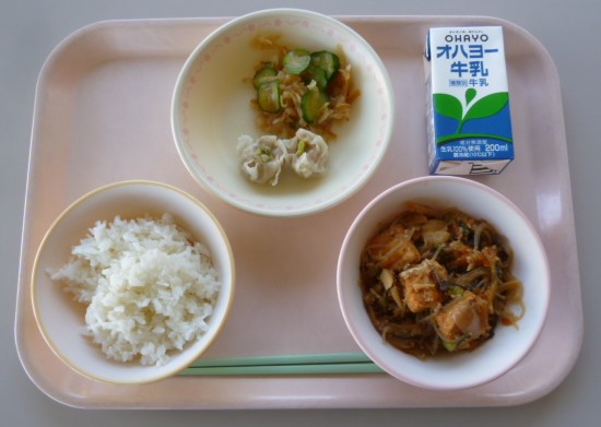 ごはん 牛乳 マーボー春雨 蒸ししゅうまい クラゲのあえもの 823キロカロリー