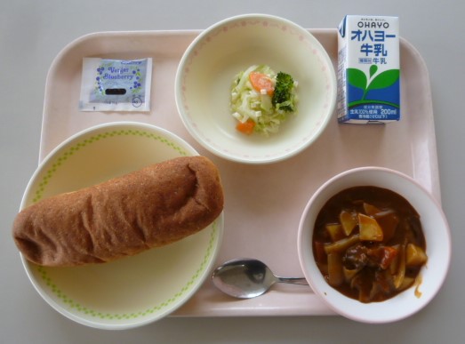 胚芽パン 牛乳 ボルシチ チーズサラダ ブルーベリージャム 832キロカロリー