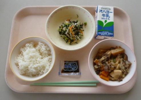 ごはん 牛乳 うま煮 ひじきの五目あえ のり佃煮 831キロカロリー