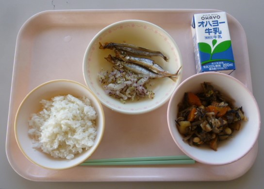 ごはん 牛乳 大豆の五目煮 焼きししゃも ゆかりあえ 819キロカロリー
