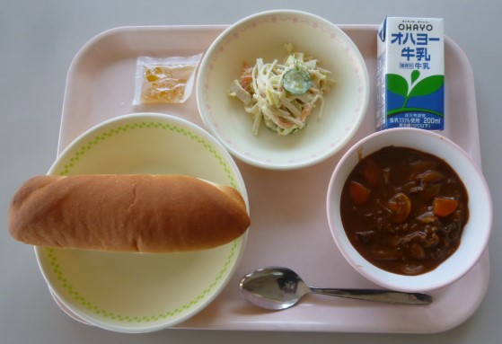 米粉パン 牛乳 ビーフシチュー ヨーグルトサラダ マーマレード 817キロカロリー