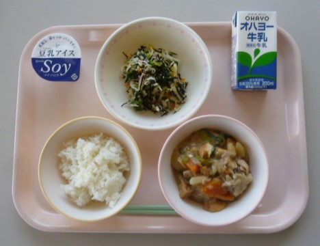 ごはん 牛乳 厚揚げのみそ煮 ひじきの五目あえ 822キロカロリー