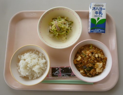 ごはん 牛乳 マーボー豆腐 ばんさんすう 韓国のり 806キロカロリー
