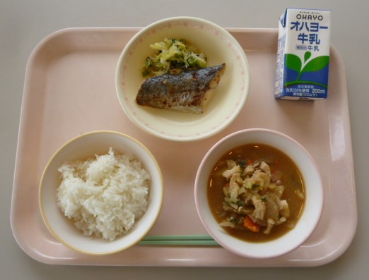 ごはん 牛乳 さわらの西京焼き ごまあえ さつま汁 814キロカロリー