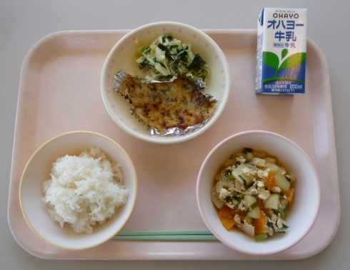 ごはん 牛乳 さわらのみそマヨネーズ焼き おひたし いりどうふ 826キロカロリー