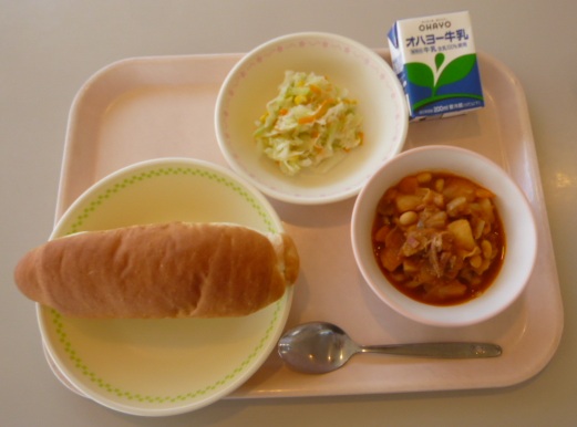 米粉パン 牛乳 ポークビーンズ フレンチサラダ 715キロカロリー