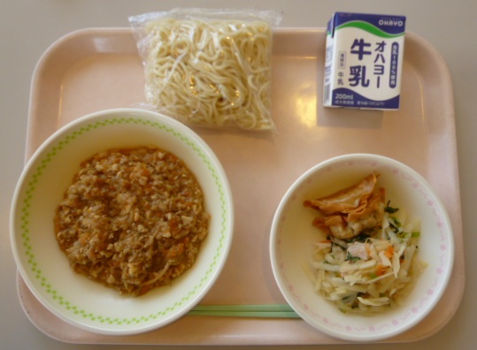 ジャージャーめん 牛乳 華風サラダ 揚げぎょうざ 913キロカロリー