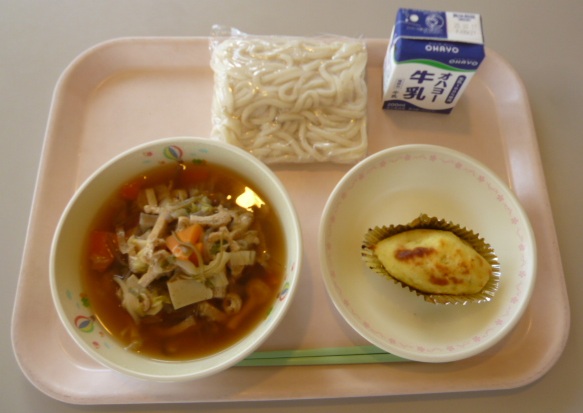 五目うどん 牛乳 スイートポテト 838キロカロリー