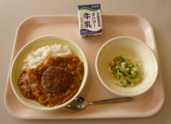 ハンバーグカレーライス 牛乳 グリーンサラダ 797キロカロリー