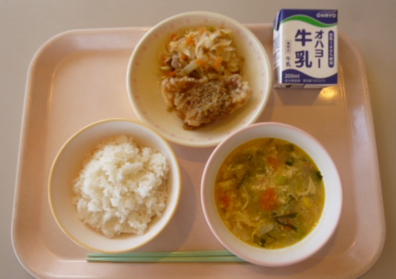 ごはん 牛乳 赤魚の四川だれかけ 中華炒め コーンスープ 838キロカロリー