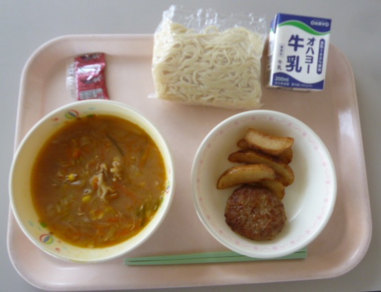 みそラーメン 牛乳 ハンバーグ フライドポテト 835キロカロリー