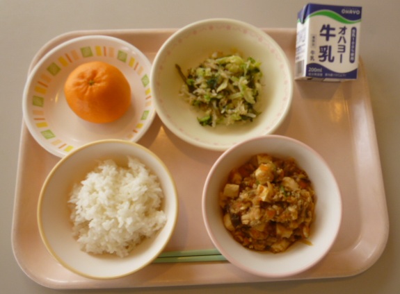 ごはん 牛乳 マーボー豆腐 ナムル くだもの(ぽんかん) 808キロカロリー