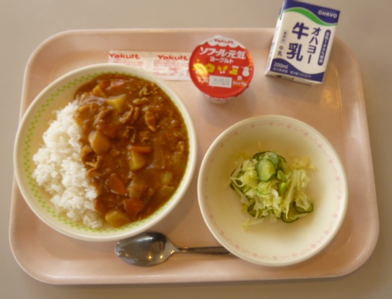 カレーライス 牛乳 グリーンサラダ ヨーグルト 808キロカロリー