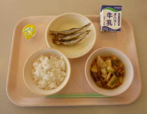ごはん 牛乳 焼きししゃも 春野菜の煮物 ゆずレモンゼリー 785キロカロリー